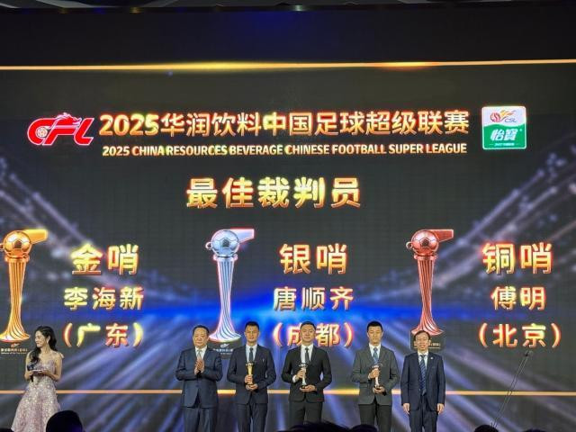 中超联赛:金哨 李海新(广东)、银哨 唐顺齐(成都)、铜哨 傅明(北京)