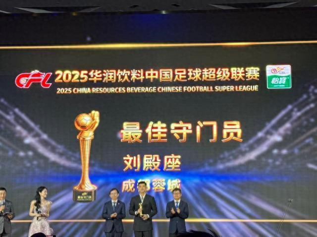 12月12日晚,2025赛季中国足球职业联赛颁奖会隆重举行,各年度奖项评选结果相继揭晓。刘殿座获中超最佳守门员,李海新获中超金哨奖。